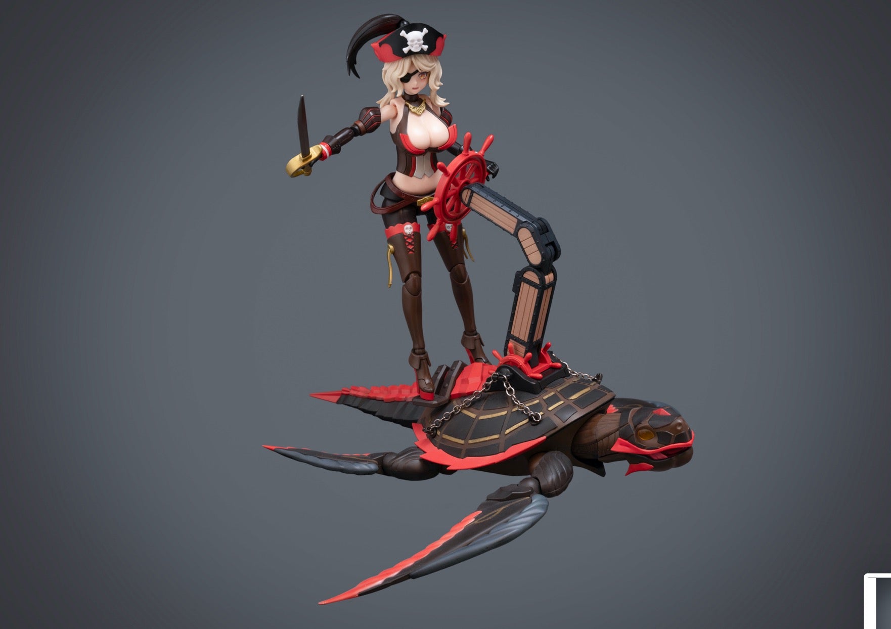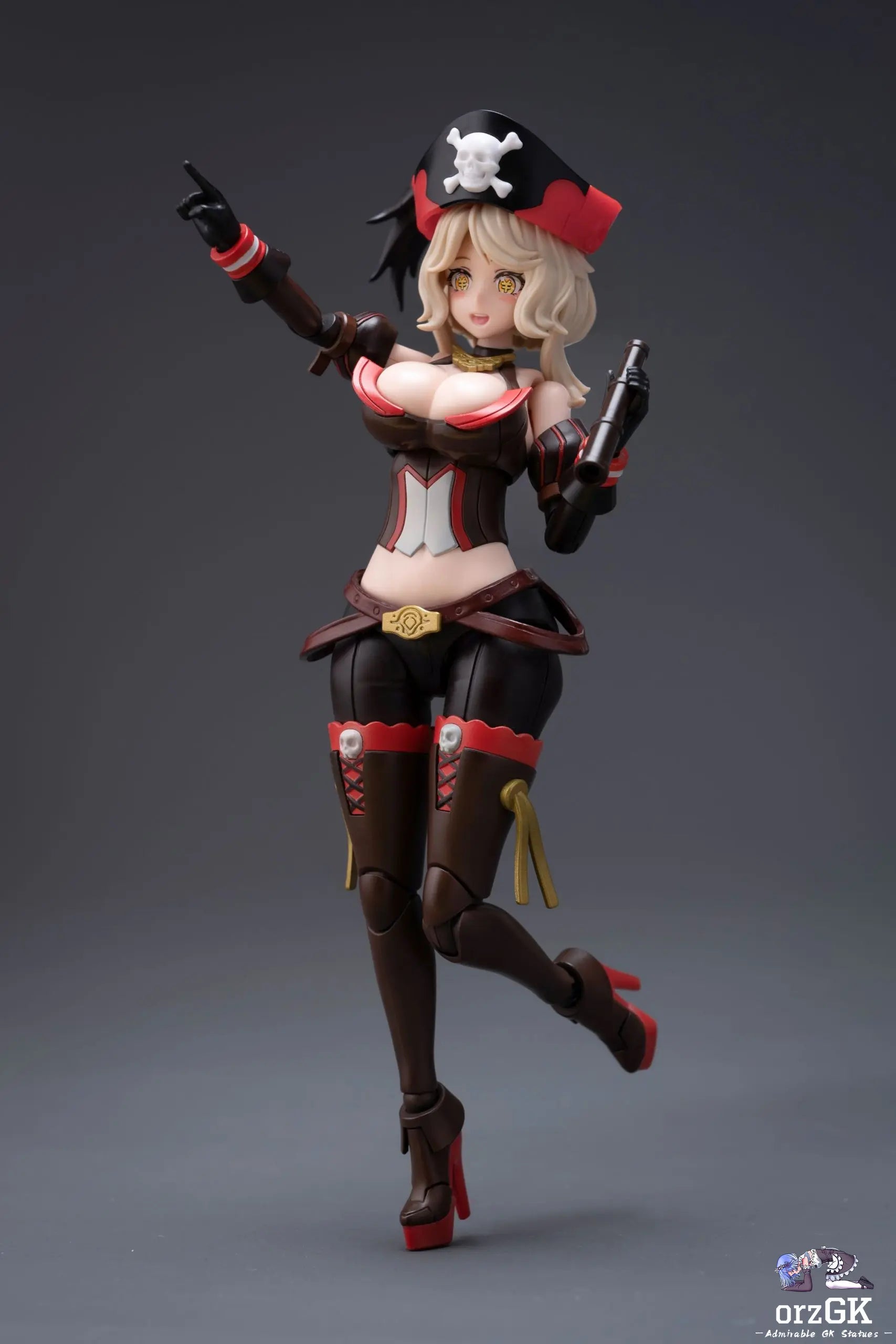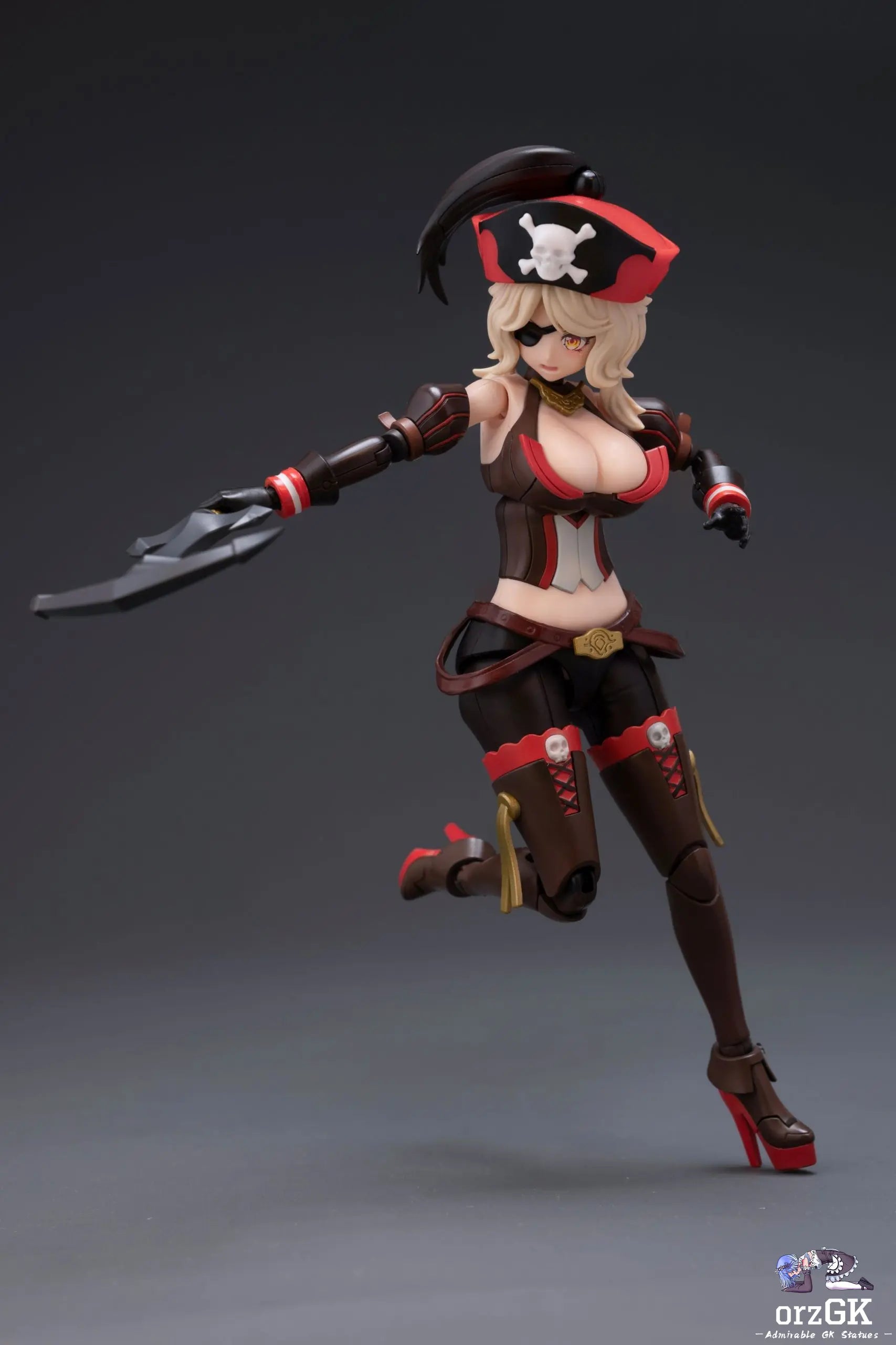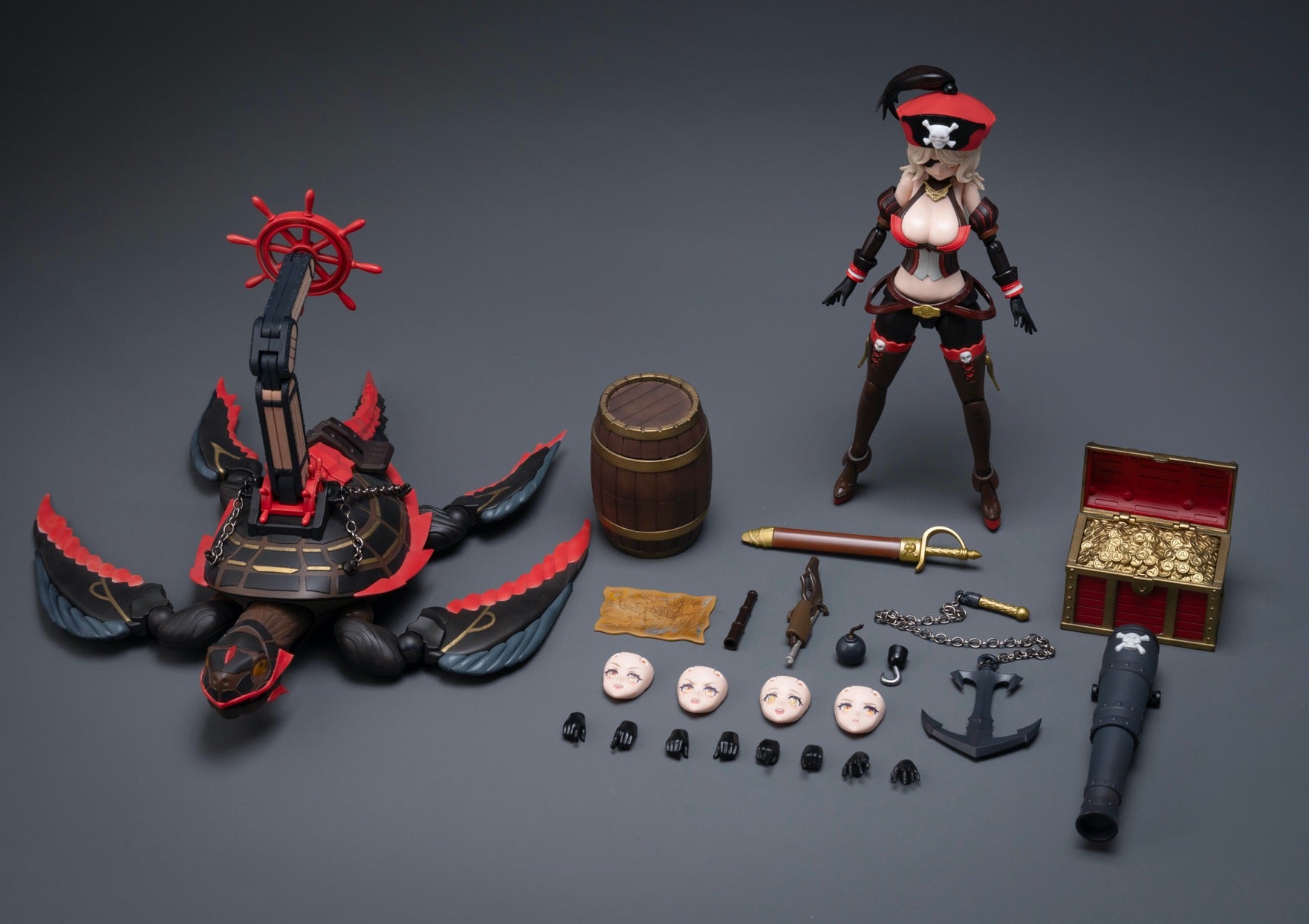 Pirate Queen Anne is the newest addition to Border Models' lineup of fully posable action figure model kits! The kit snaps together so glue isn't needed, and since the parts are molded in color, you won't need to worry about painting. Interchangeable hands, faces, and bust parts are included, and she's also loaded with pirate weapons and equipment! Order her for your own collection today! [Figure Size]: Approximately 17cm tall when completed [Materials]: [Set Contents]: Parts for main figure Interchangeable painted faces (x4) Interchangeable unpainted face (decals included) Bust parts (x2, different sizes) Interchangeable hands (x5 pairs) Hook hand Bomb Pistol Spyglass Map Sword and scabbard Treasure chest Cannon Barrel Hat (removable) Anchor with chain Sea turtle with ship's wheel