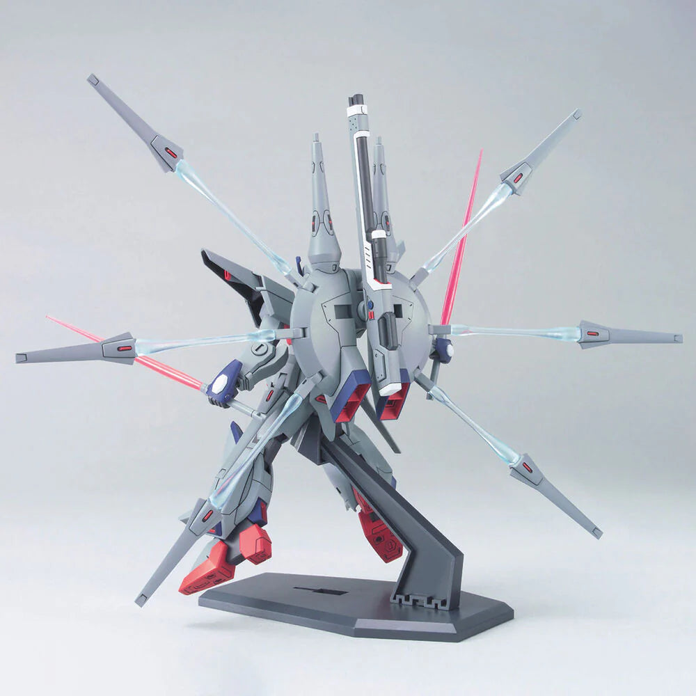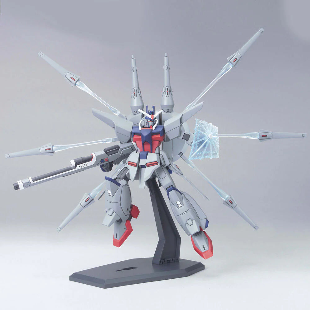 One of the more overdone designs in Gundam! This HG kit of the Legend Gundam comes with the clear blue “trails” leading from the whopping big Dragoon Unit. All the parts are molded in colour and snap together for ease in assembly. No base is included, though you can mount the finished model on the bases that have been included in previous HG kits.
