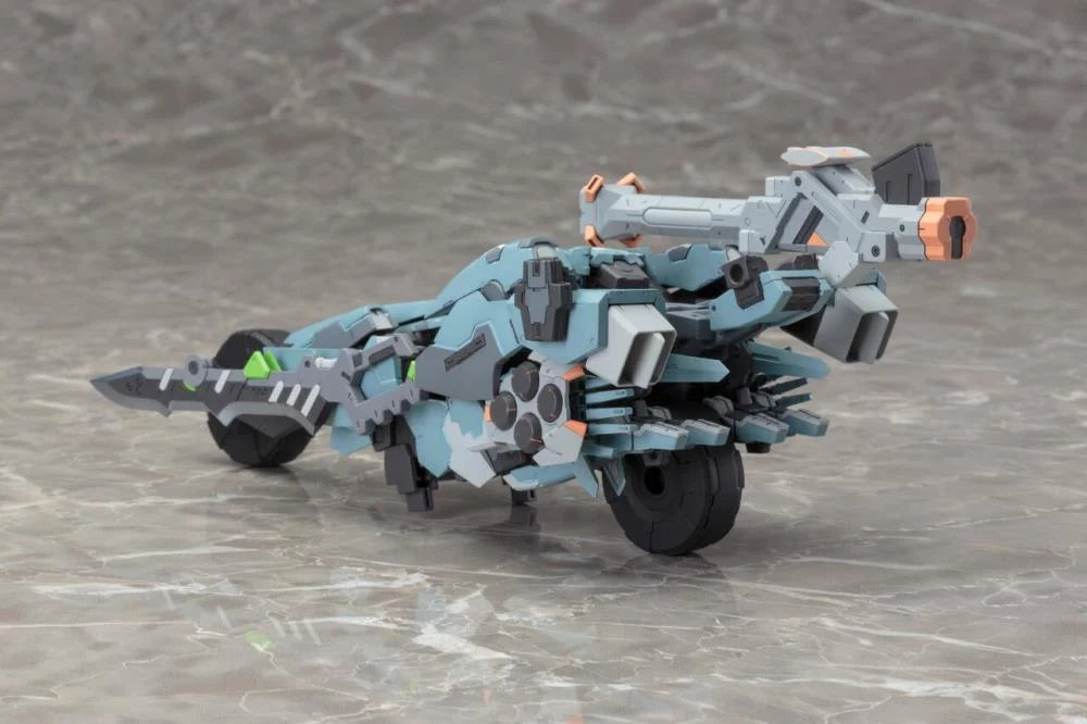 From Nintendo's open world RPG, XenobladeX, comes a plastic model kit of the Skell, Formula! The model can be completely transformed from its distinctive mecha form to vehicle form. The coloring, by mecha designer Takayuki Yanase, has also been faithfully recreated. The model’s coloring is recreated with parts separation, and decals are also included. Armament such as the sword, machinegun, grenade, beamsaber, and shield are included.