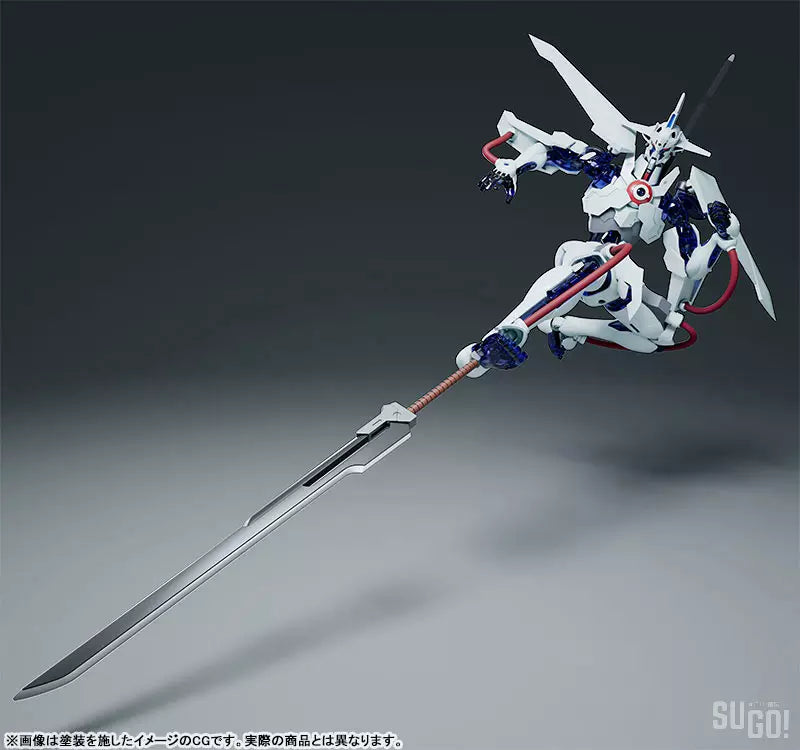 From the popular anime series "Gun x Sword" comes a MODEROID plastic model of Van's armor and one of the Original Seven mecha, Dann of Thursday. Standing at a height of approximately 190mm, this model features a sword and interchangeable hand parts. Translucent material is used for the G-ER fluid sections, while flexible parts allow for a wide range of articulation without sacrificing the mecha's unique design. The included sword can be separated into a large and small sword, and can even be attached to the forearm with additional parts. Dann of Thursday can also transform into sword mode with interchangeable parts. The mecha's various components are pre-colored and separated into different runners, making assembly simple and accurate to the series.
