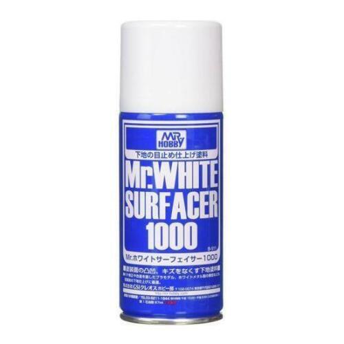 Since it is white, Mr.WHITE SURFACER is used to modify plastic model parts that are black or dark in color. If this is used on the entire model, only a thin over-coat of paint in the desired color is necessary.