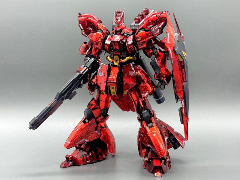 This limited-edition Sazabi features mechanical core plating, a metallic finish, enhanced mechanical design, dynamic poseability, and exclusive gimmicks.