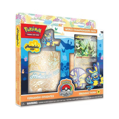 Compete at the highest level with a World Championships deck! Select from four elite decks, each an exact card-for-card reproduction of a top contender’s deck from the 2024 Pokémon Trading Card Game World Championships in Honolulu. Every 2024 Pokémon TCG World Championships Deck features: • A 60-card World Championships Deck • Official 2024 World Championships booklet • Exclusive 2024 World Championships pin • 2024 World Championships coin • Custom 2024 World Championships deck box • Playmat and poster • Code card for Pokémon Trading Card Game Live.